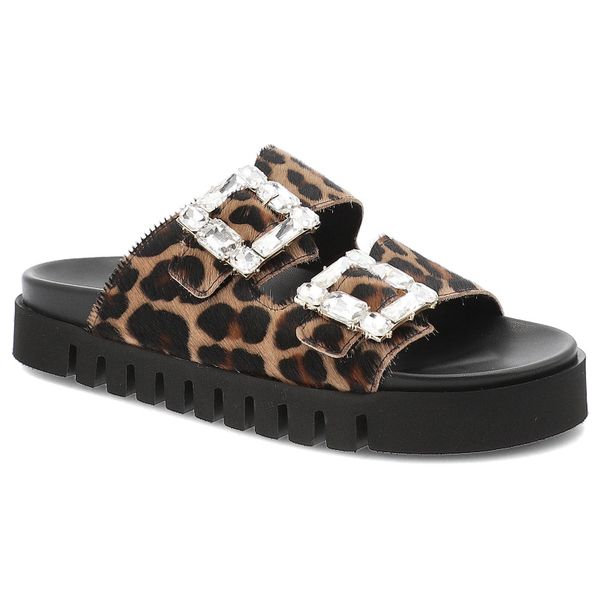 Klapki CHEBELLO – 4688_-504-000-PSK-S390 Panterka w wyrazisty wzór panterki to idealny wybór dla kobiet, które uwielbiają się wyróżniać i cenią odważne, modowe akcenty. Cholewka ozdobiona efektownymi, dużymi klamrami wysadzanymi błyszczącymi kryształkami przyciąga wzrok, nadając charakteru każdej stylizacji. Miękka, profilowana wkładka zapewnia stopom najwyższy komfort podczas chodzenia, a lekka, ale solidna podeszwa gwarantuje wygodę przez cały dzień. […]