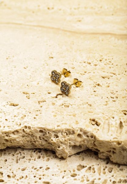 Złote Kolczyki Kwiatki z Drobnymi Cyrkoniami Finelitia