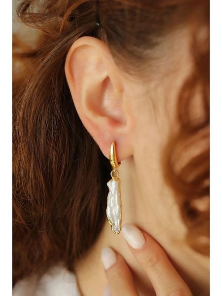 NOKO GOLD kolczyki srebrne ogromne białe perły barokowe półpierścień sztyft