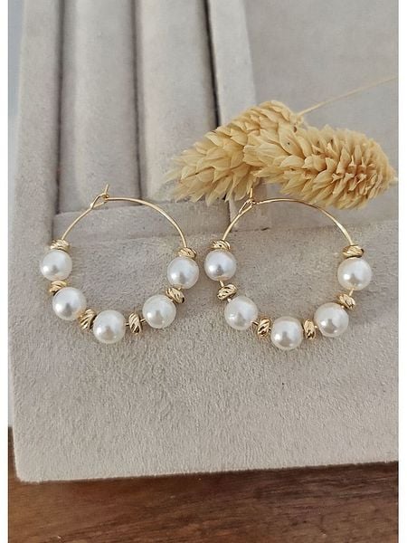 – materiał: mosiądz- powłoka: złoto- zapięcie: wtyk- rodzaj perły: syntetyczna perła ozdobna- kolor pereł: białyWskazówka: Zdjęcie produktu w powiększeniu.