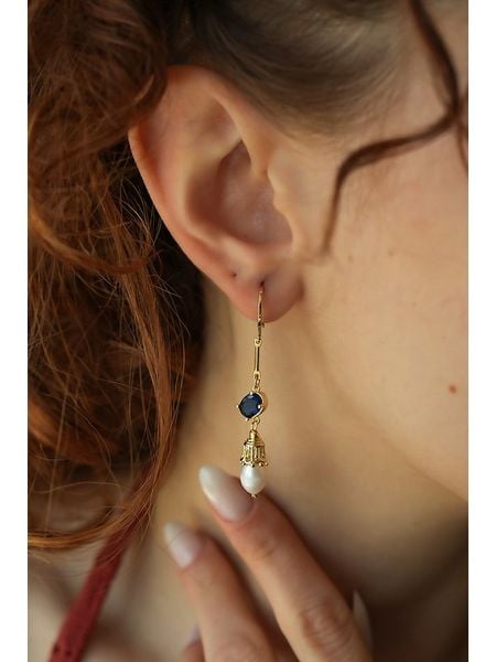 – materiał: mosiądz- powłoka: złoto- zapięcie: patka- rodzaj kamienia: cyrkonia- kolor kamienia: granatowy- rodzaj perły: syntetyczna perła ozdobnaWskazówka: Zdjęcie produktu w powiększeniu.