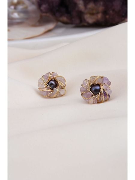 – materiał 1: mosiądz- powłoka: złoto- materiał 2: perły- zapięcie: wtyk- rodzaj kamienia: ametyst- kolor kamienia: fioletowyWskazówka: Zdjęcie produktu w powiększeniu.