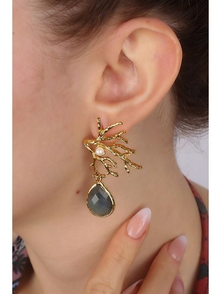 Pierres delicates Pozłacane kolczyki-wkrętki z labradorytami rozmiar: onesize