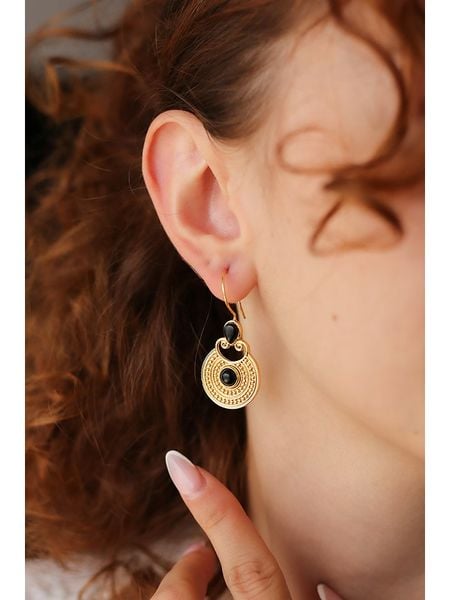– materiał: mosiądz- powłoka: złoto- zapięcie: bigiel- rodzaj kamienia: kwarc dymny- kolor kamienia: czarnyWskazówka: Zdjęcie produktu w powiększeniu.