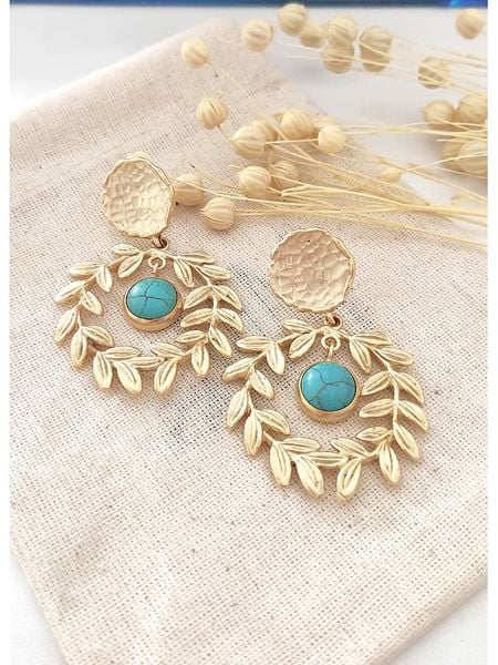 – materiał: mosiądz- powłoka: 14K złoto- zapięcie: motylkowe- rodzaj kamienia: turkus- kolor kamienia: turkusowyWskazówka: Zdjęcie produktu w powiększeniu.