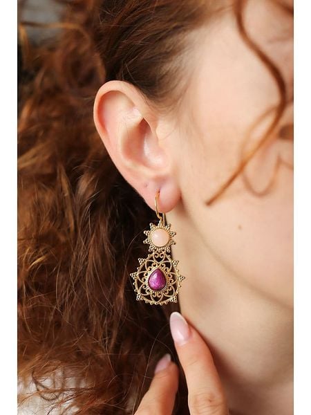 – materiał: mosiądz- powłoka: złoto- zapięcie: bigiel- rodzaj kamienia 1: agat- rodzaj kamienia 2: kwarc- kolor kamienia: różowyWskazówka: Zdjęcie produktu w powiększeniu.