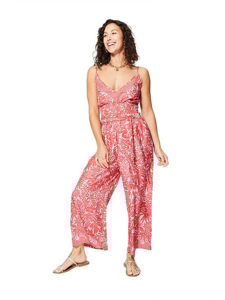 – ramiączka: regulowane- dekolt: V- talia: marszczona- zakończenia nogawek: dzwony- krój: prosty- wzór: na całościUwaga: Na metkach odzieży tej marki znajdują się rozmiary francuskie. Rozmiarówka została przez nas przeliczona. Podane do wyboru warianty rozmiarów odpowiadają standardowym europejskim rozmiarom konfekcji. Prosimy zapoznać się z zamieszczonym objaśnieniem rozmiarów.