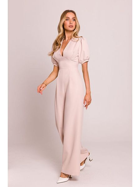 – dekolt: V- zapięcie: suwak- rękaw: bufiasty- krój nogawek: Wide Leg- krój: taliowany- detale: kant- look: jednokolorowy