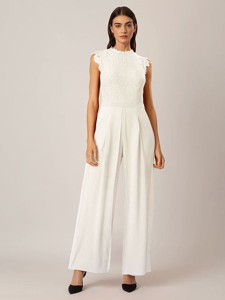 – ramiączka: szerokie- dekolt: okrągły- zapięcie: guzik na plecach- krój nogawek: Wide Leg- detale: kant, koronka- krój: taliowany- look: jednokolorowy