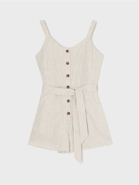 Bawełniany kombinezon letni z ozdobnymi guzikami – kremowy