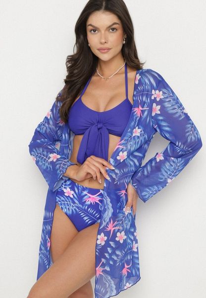 Niebieskie Bikini Wiązany Biustonosz i Majtki Figi z Dodatkową Narzutką z Siateczki Zareliah