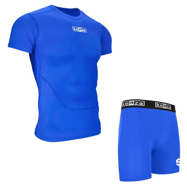 Komplet termoaktywny Keeza z krótkim rękawem Ocena: Tags: Sporty Piłka nożna Odzież piłkarska Bielizna termoaktywna piłkarska Kolor: Niebieski Rozmiar: L Przeznaczenie: unisex Marka: KEEZA