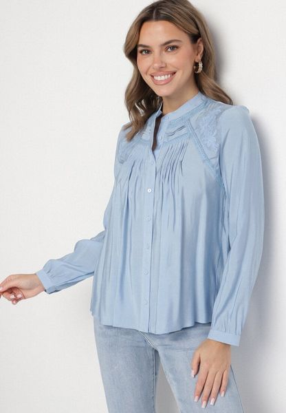 Jasnoniebieska Koszula z Ozdobnym Haftem Nanania