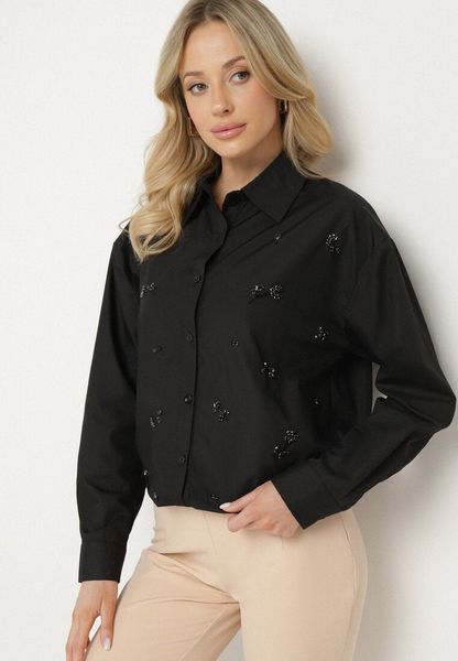 Czarna Koszula z Bawełny Ozdobiona Naszywkami Katiema