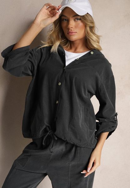 Ciemnoszara Koszula z Bawełny z Regulowanymi Rękawami i Kapturem Terresia