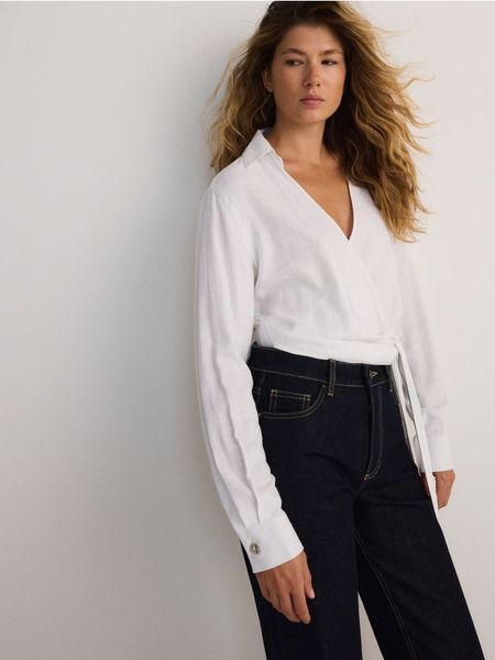 Kopertowa koszula z dodatkiem lnu – biały