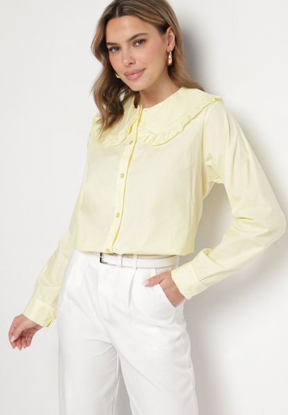 Żółta Koszula z Bawełny Ozdobiona Kołnierzykiem Fulinea