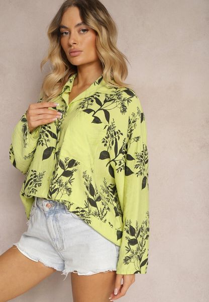 Zielona Koszula z Wiskozy Ozdobiona Kieszonką Finamla