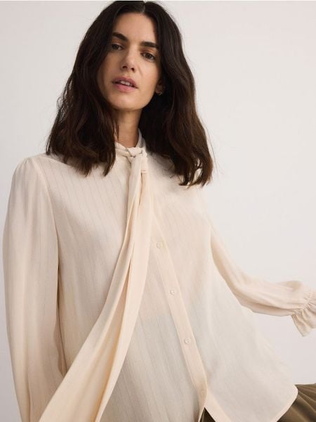 Koszula z wiązaniem przy dekolcie – złamana biel