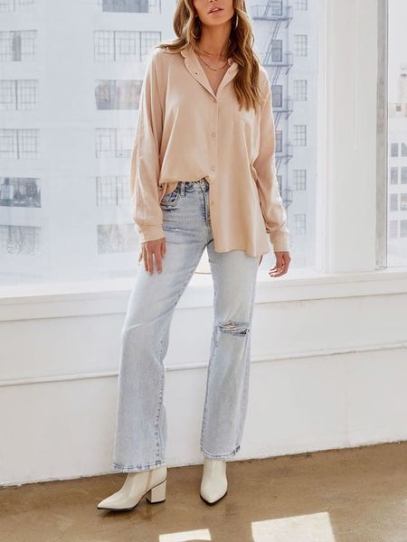 – kołnierz: kent- zapięcie: listwa guzikowa- zakończenie rękawów: mankiet na guzik- kieszenie: na piersi- krój: oversized- look: jednokolorowy