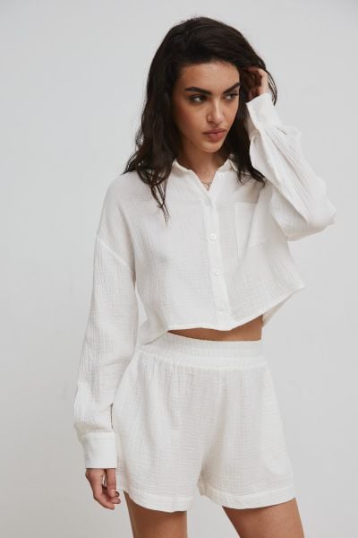 Krótka koszula z muślinu w kolorze ECRU – PORTELA-S/M