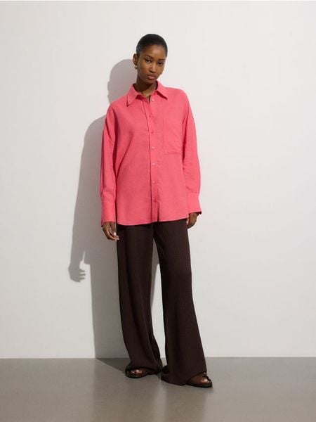 Koszula oversize z dodatkiem lnu – intenstywna czerwień