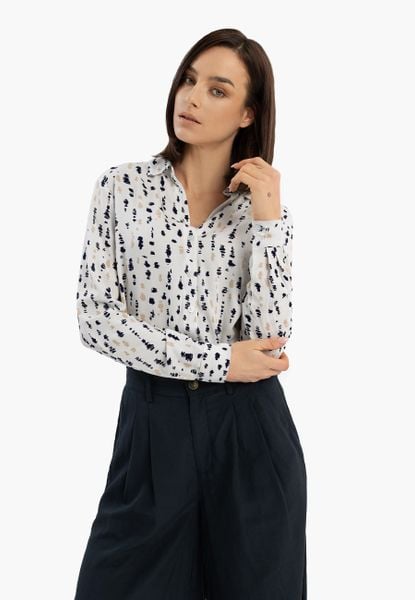Cechy produktu: naturalny, przewiewny materiałabstrakcyjny, nieregularny wzór fason Regular Fit kołnierzyk listwa na guziki rękawy wykończone mankietami na guzikiluźny, zaokrąglony dółzaszewka z tyłu na karczku detal Volcano Modelka ze zdjęć studyjnych ma 174 cm wzrostu i prezentuje rozmiar L.