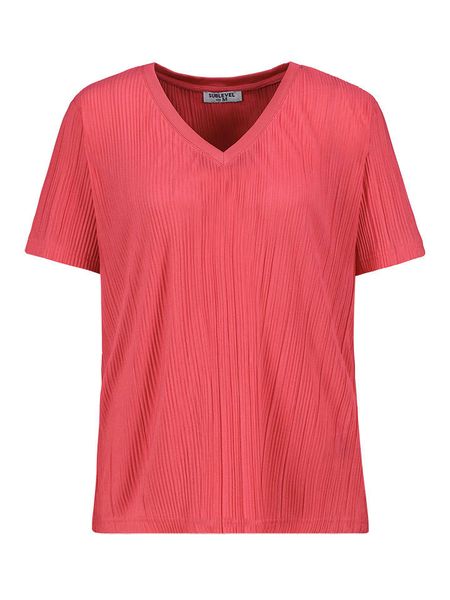 – dekolt: V- krój: prosty- look: jednokolorowy, plisy