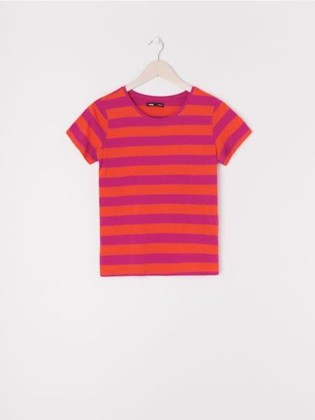 Sinsay – Bawełniana koszulka w paski – różowy –