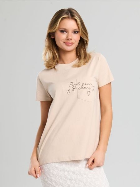 Sinsay – Bawełniana koszulka z haftem – beżowy –