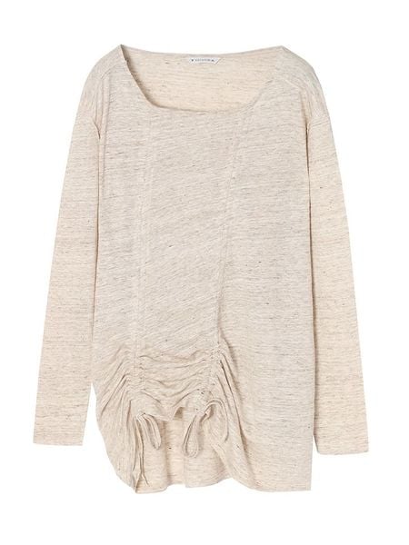 – czysty len- dekolt: okrągły- detale: marszczenia- wzór: melanżowy