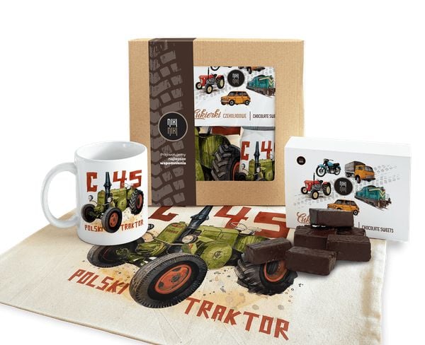 Paczka prezentowa dla rolnika Ursus C-45 cukierki czekoladowe 125 gkubek ceramicznytorba bawełniana Paczkę można dodatkowo powiększyć o koszulkę lub bluzę (Kliknij aby zobaczyć wymiary i specyfikacje)Ursus C-45Początki Ursusa sięgają roku 1946, w którym pojawił się pomysł wdrożenia do produkcji polskich ciągników rolniczych. Ursus C-45 zadebiutował w roku 1947 podczas pochodu pierwszomajowego w Warszawie, wówczas pod roboczą nazwą […]