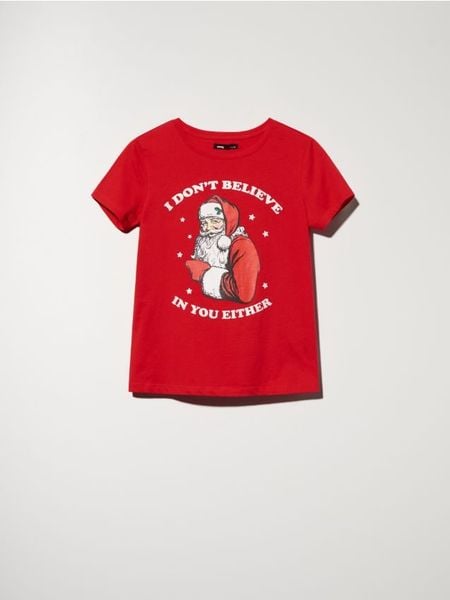 Sinsay – Bawełniana koszulka z nadrukiem świątecznym – czerwony –