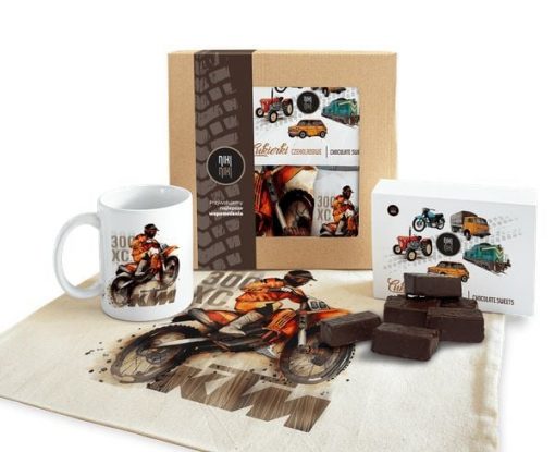 Paczka prezentowa dla fana motocykli Enduro cukierki czekoladowe 125 gkubek ceramicznytorba bawełniana Paczkę można dodatkowo powiększyć o koszulkę lub bluzę (Kliknij aby zobaczyć wymiary i specyfikacje)KTM 300XCPrawdziwa gratka dla fanów enduro od austriackich gigantów sportów motocyklowych. KTM 300, pomimo bycia przeznaczonym na wyścigi, największą popularność zyskał wśród amatorów i ludzi skupionych bardziej na frajdzie, niż na wygrywaniu […]