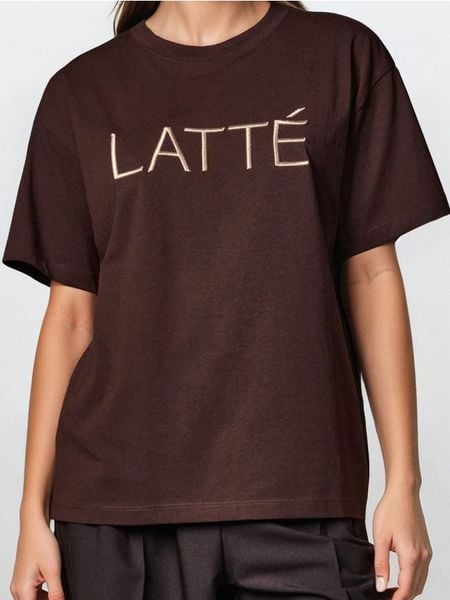 Koszulka z haftowanym napisem – brązowy