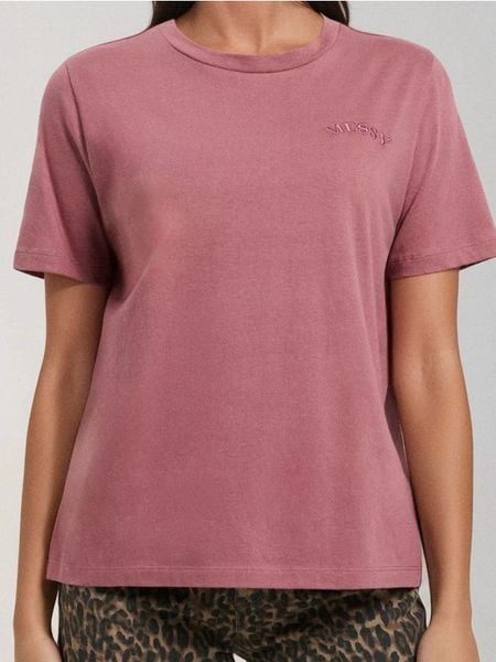 Sinsay – Koszulka z drobnym napisem – różowy –