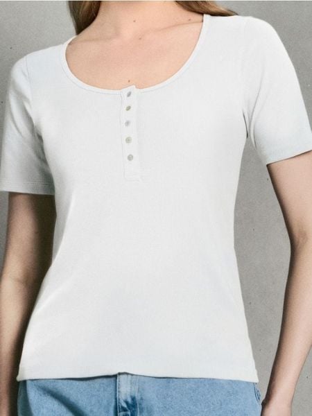Sinsay – Prążkowana koszulka z guzikami – biały –