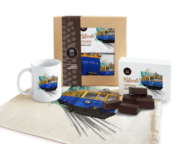 Paczka prezentowa dla fana kolei z pociągiem EN57 cukierki czekoladowe 125 g kubek ceramiczny torba bawełniana Paczkę można dodatkowo powiększyć o koszulkę lub bluzę (Kliknij aby zobaczyć wymiary i specyfikacje) Pafawag 5B/6B EN57 Kibel, ortopeda, tyku-tyku, a może żółtek? Pociąg EN57 o wielu obliczach na stałe zapisał się w kartach polskiej kolei. Kojarzą go nie tylko zapaleni […]