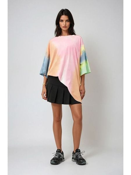 – czysta bawełna- dekolt: okrągły- długość rękawa: 7/8- krój: oversized- wzór: przejście kolorów