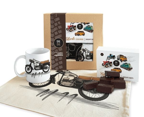 Paczka prezentowa z motocyklem SHL M11 cukierki czekoladowe 125 gkubek ceramicznytorba bawełniana Paczkę można dodatkowo powiększyć o koszulkę lub bluzę (Kliknij aby zobaczyć wymiary i specyfikacje)Motocykl SHL M11SHL z czasów PRL, model znany nam i lubiany, był opracowany na podstawie przedwojennego modelu zaprojektowanego przez inżyniera Rafała Ekielskiego. Produkcję tego protoplasty przerwała jednak II wojna światowa. Po wojnie […]
