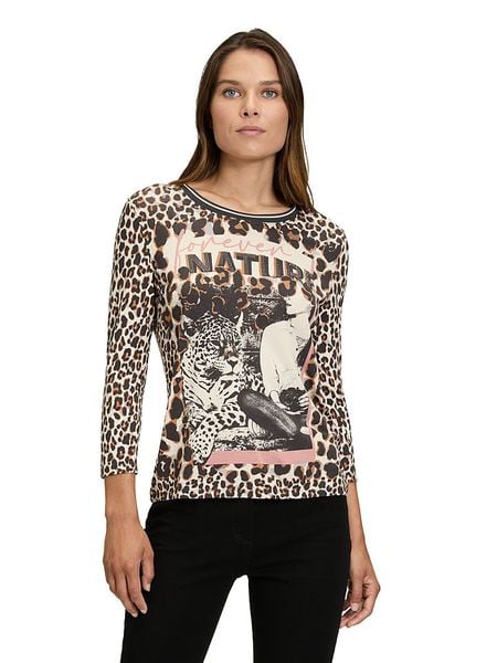 – dekolt: okrągły- długość rękawa: 3/4- krój: taliowany- nadruk: graficzny, logo, w formie napisu- wzór: panterka