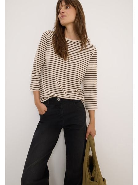 – dekolt: łódka- długość rękawa: 3/4- krój: prosty- wzór: paski