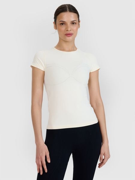 4F Koszulka do jogi i pilatesu szybkoschnąca damska – biała M/L