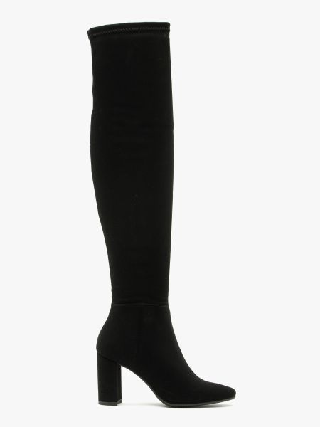 Czarne kozaki nad kolano na słupkowym obcasie DORISS