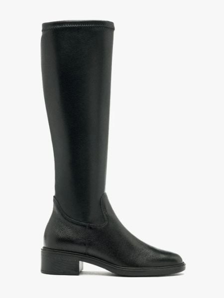 Czarne kozaki linii RYŁKO.Część obuwia przylegająca do stopy wykonana ze skóry licowej, a cholewka wykonana z syntetycznej skóry licowej.Elastyczna cholewka dopasowuje się do nogi.Obcas o wysokości 4,5 cm.Nosek okrągły.Buty ocieplane włókniną.Zamek do połowy łydki.Dystrybutor: Brawo Sp. z o.o. ul. Dworcowa 19, 34-130 Kalwaria Zebrzydowska; [email protected] pochodzenia: POLSKA