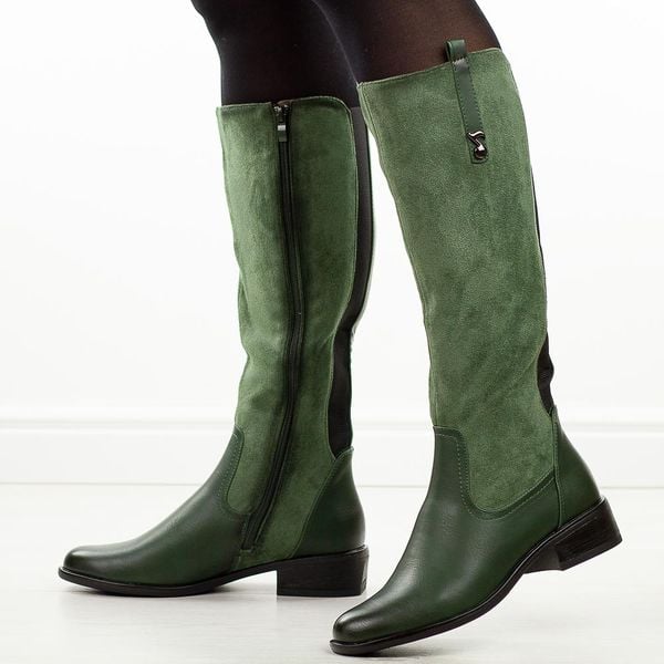 Zielone długie kozaki z elastyczną cholewką Juanra