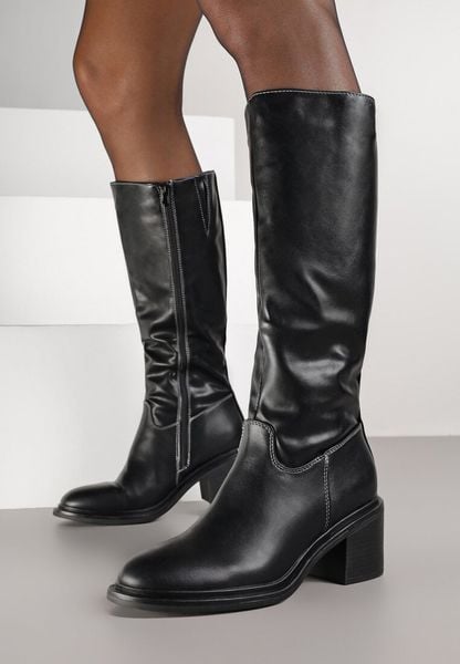 Czarne Kozaki Vices na Obcasie w Stylu Oficerek Afurrive