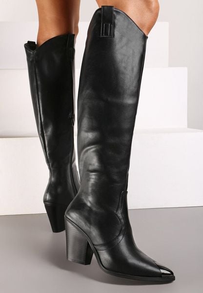 Kozaki Hemfyr z cholewką o zaokrąglonej krawędzi, kończącą się przed kolanem. Udekorowane przeszyciem nad śródstopiem i patkami po bokach. Zapinane na zamek błyskawiczny. Na stożkowym obcasie o średniej wysokości, ze szpiczastym noskiem zakończonym metalowym obiciem. Wykonane z ekoskóry, lekko ocieplone – wyściółka i wkładka z koca obuwniczego. Kozaki Hemfyr nawiązujące do fasonu kowbojek spodobają się […]