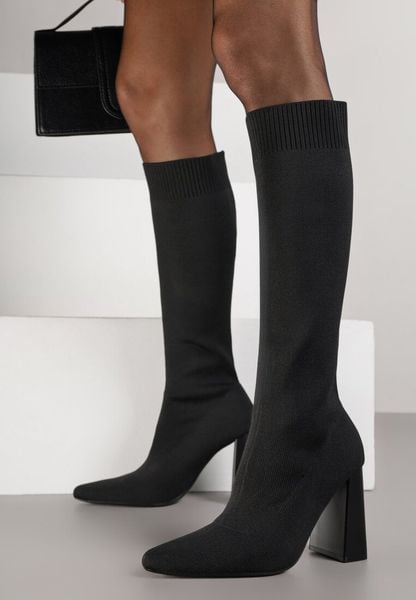 Czarne Skarpetkowe Kozaki VICES na Geometrycznym Słupku z Noskiem w Szpic Zevra