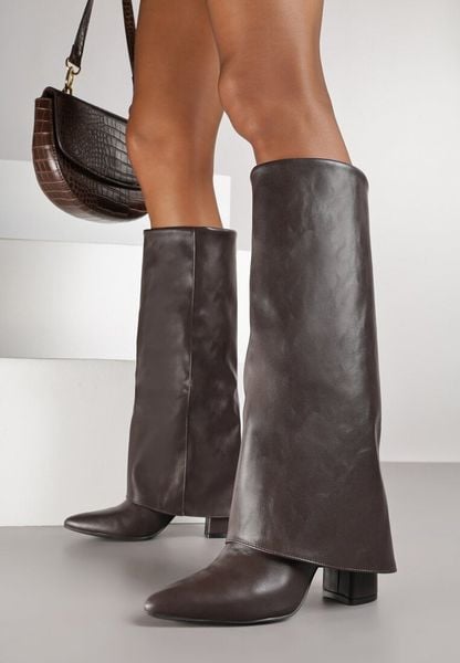 Ciemnobrązowe Kozaki Vices na Obcasie Ozdobione Wywiniętą Cholewką Alarriva